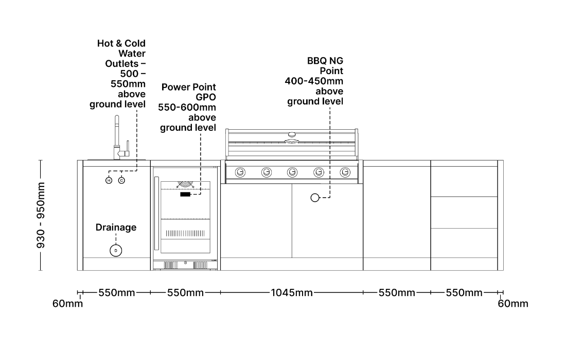 • Total Kitchen Width with BeefEater 5bnr BBQ - 3365mm
