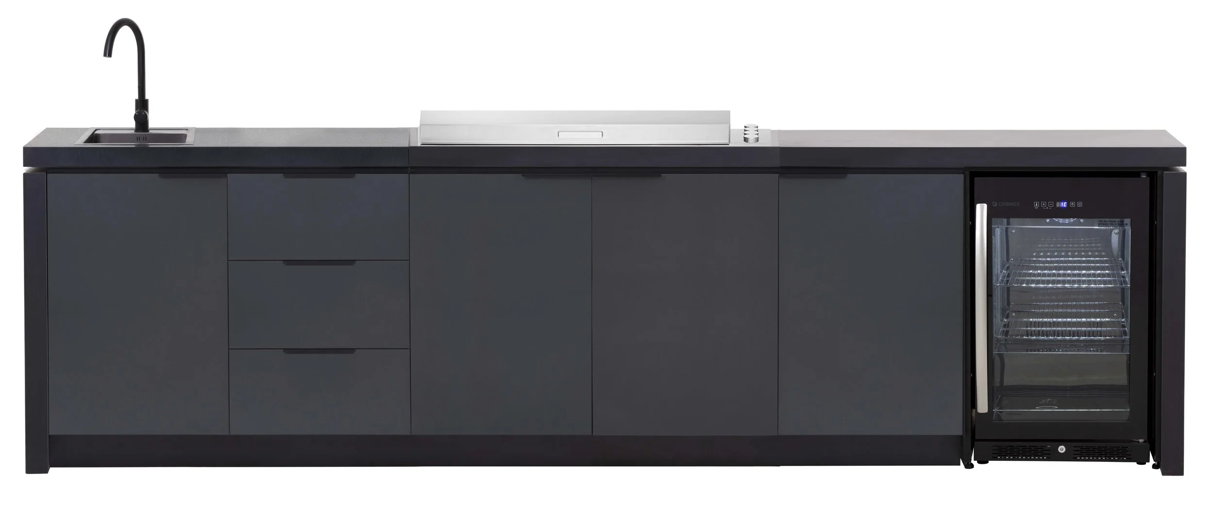 This Cabinex Premium kitchen with the BeefEater Proline Flatlid is designed for those who want more space, more storage and a more refined outdoor setup. It combines professional BBQ performance with a larger, more functional kitchen layout.